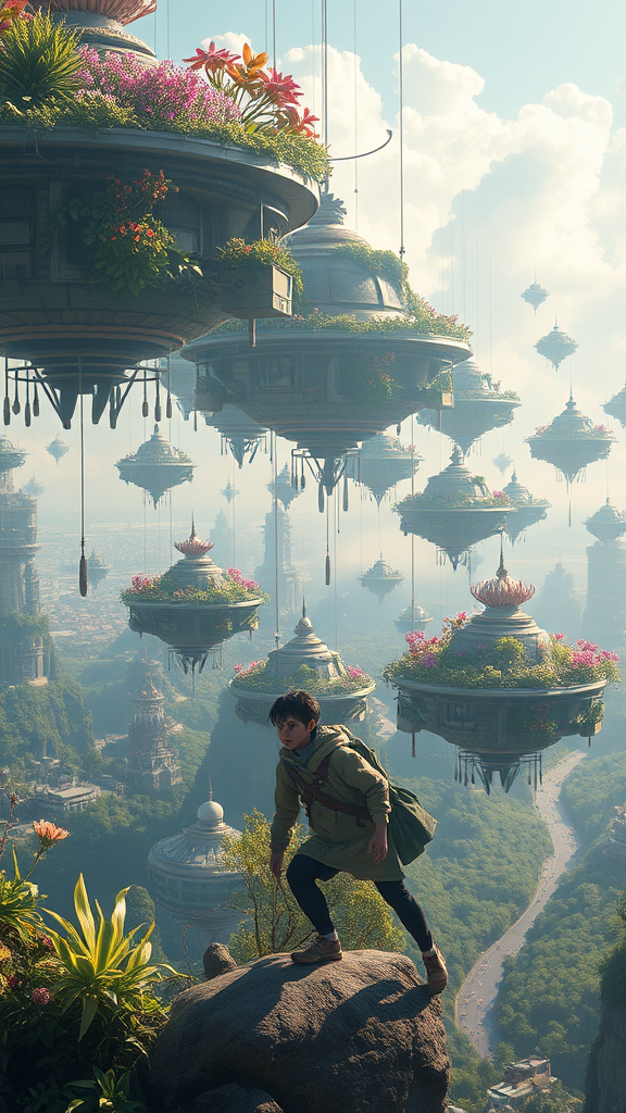 In a distant future, humanity has developed an intricate network of floating cities that drift above the remnants of Earth. Residents navigate their lives through advanced technology blended seamlessly with nature, creating a harmonious balance between organic and artificial. In this world, people possess the ability to communicate telepathically with both each other and the city's bioengineered flora and fauna, fostering a deeper connection with their surroundings. Adventure unfolds as a young individual, gifted with unique abilities, embarks on a quest that could change the destiny of these airborne sanctuaries.
