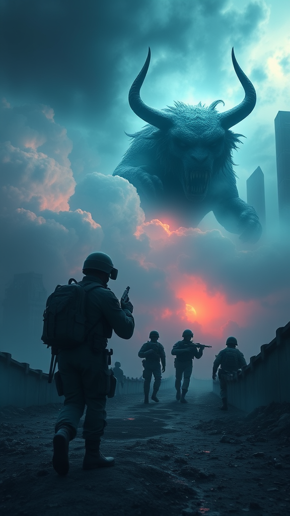In a future where soldiers undergo virtual reality training for supreme efficiency, an insidious virus infiltrates the software, trapping them inside hyper-realistic simulated worlds where the threats turn dangerously real. Imagine a cursed prince morphing into a beast under the nebulous skies, captured with a Nikon D3500 DSLR Camera, where mystical and eerie atmospheres blend. The soldiers navigate environments shifting from science fiction landscapes to enchanting fairy tale realms, teetering on the brink between reality and illusion, reminiscent of the captivating styles of Robert Capa and Alfred Stieglitz. As they confront these tangible nightmares, their journey unfolds against the backdrop of vibrant multiple-colored backgrounds, from futuristic colliders to serene island lagoons. Utilizing thermal vision and cinematic effects, the soldiers fight to survive in this cinematic saga, blending hyper-realistic details in an 8K Ultra-HD resolution. With moody, natural lighting casting shadows and creating a gripping atmosphere, every scene is bathed in ultra detail, echoing the pursuit of survival through dynamic and action-packed sequences. A perfect melding of epic sci-fi storytelling with a photographic lens of Hasselblad X1D - 50c quality, creating a vivid, raw depiction of their harrowing trials.