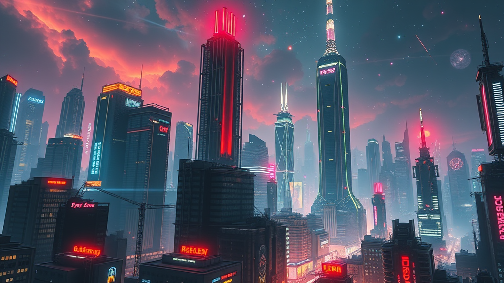 In a futuristic cityscape glowing with neon lights, where towering skyscrapers reach towards the cosmos, a lone inventor unveils a machine capable of altering time, drawing the attention of a shadowy group determined to control its power.