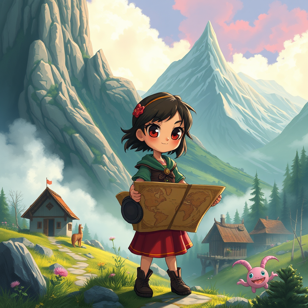 In a hidden village nestled between towering mountains, a curious young girl discovers a mysterious map that leads to a forgotten realm where time flows differently and magical creatures roam free. Determined to uncover the secrets of this mystical place, she sets off on a thrilling adventure, encountering friends, foes, and challenges that test her courage and ingenuity at every turn.