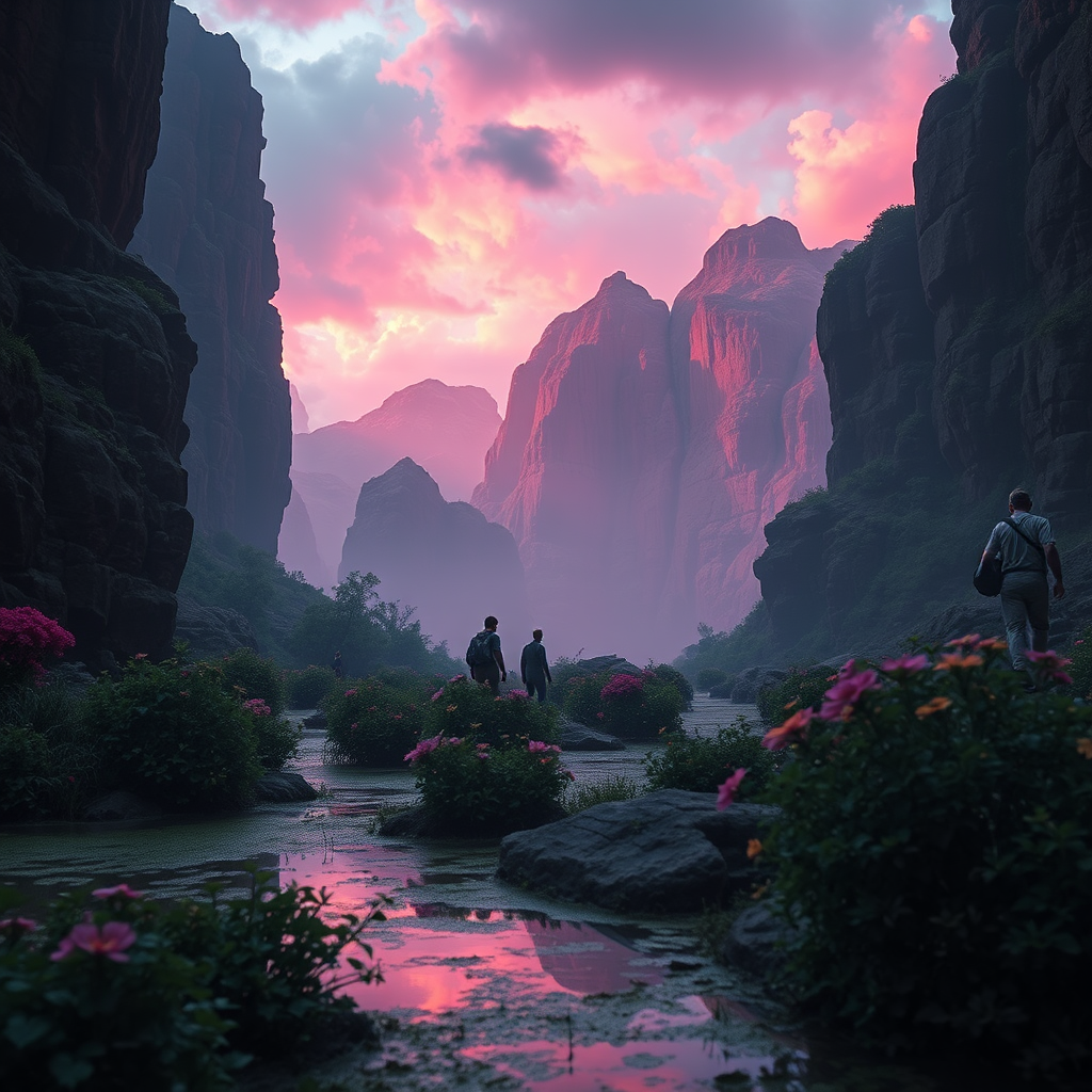 In a near-utopian society where individuals have cybernetic implants that filter their thoughts, extracting negativity and rewarding positivity with delightful stimuli, a talented hacker group has discovered a way to tap into the darkest corners of peoples' minds. As they delve into this digital underworld, a band of adventurers embarks on a quest to a remote land in search of a mythical flower reputed for its miraculous healing properties. Captivating landscapes unfold, from the enigmatic, marshy depths of Cheyenne Mountain to the stunning asteroid fields and vibrant jungles, all captured through the lens of a Fujifilm X-T4 Mirrorless Camera, enhanced with cinematic effects akin to the works of Lee Friedlander and Steven Cormann. Imagine hyper-realistic, photorealistic scenes with stunning detail captured on a Hasselblad X1D - 50c. The journey unveils a world rich in dynamic lighting and textures, where magic realism meets science fiction dieselpunk in 8K ultra-HD. The interplay of natural light and moody atmospheric illumination creates a backdrop for epic moments, evoking the stylistic essence of Irving Penn's photography. As the travelers navigate through breathtaking vistas and ancient mysteries, highlighted by cinematic lighting and intricate detail, the parallel digital expedition uncovers raw emotions and poignant truths, reminiscent of the evocative mood in 'pursuit' by Gesaffelstein. Amidst the adventure, the allure of a mysterious pendant and the surreal vision of 'microwave vision' contribute to a narrative teeming with vibrant colors and depth, ultimately blurring the line between the virtual and the real.
