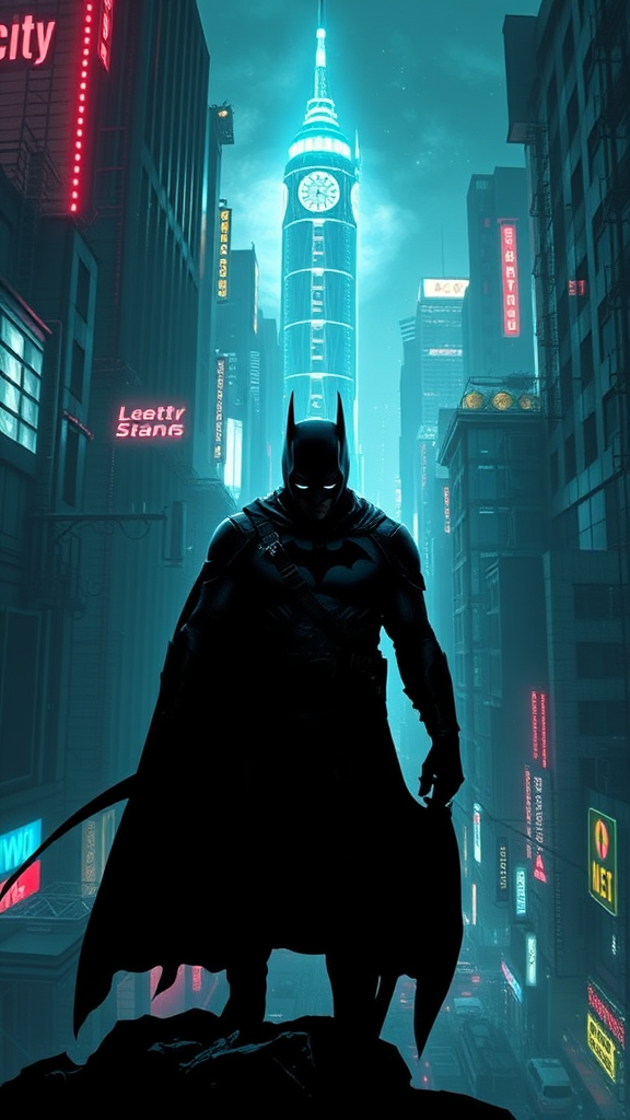 In a sprawling dystopian metropolis where neon lights pierce the perpetual darkness, a vigilante cloaked in shadows takes on the persona of the night. This relentless hero navigates the labyrinthine alleys and high-tech skyscrapers of Night City, his silhouette a symbol of justice amidst rampant corruption and cybernetic chaos. Armed with formidable gadgets and a tenacious moral code, he combats an array of sinister foes, each more technologically advanced and morally depraved than the last. As he grapples with his own inner demons, this Dark Knight strives to restore hope to a city teetering on the brink of oblivion, casting a long shadow of vigilance over a world lost in the glow of artificial life.
