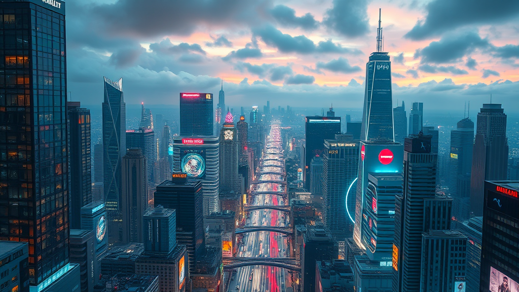 In a sprawling metropolis where humans and machines have seamlessly merged, neon-lit skyscrapers pierce the cloud-filled sky. Pulsing circuits blend with veins as individuals navigate the blurred boundaries of biology and technology. A diverse tapestry of digital tattoos and augmented realities, where information flows like electricity, creates a labyrinth of interconnected life. Amidst the vibrant glow of holographic advertisements and the hum of electric vehicles, a subculture thrives, challenging the status quo and reimagining what it means to be human in a world where the line between man and machine has all but disappeared.