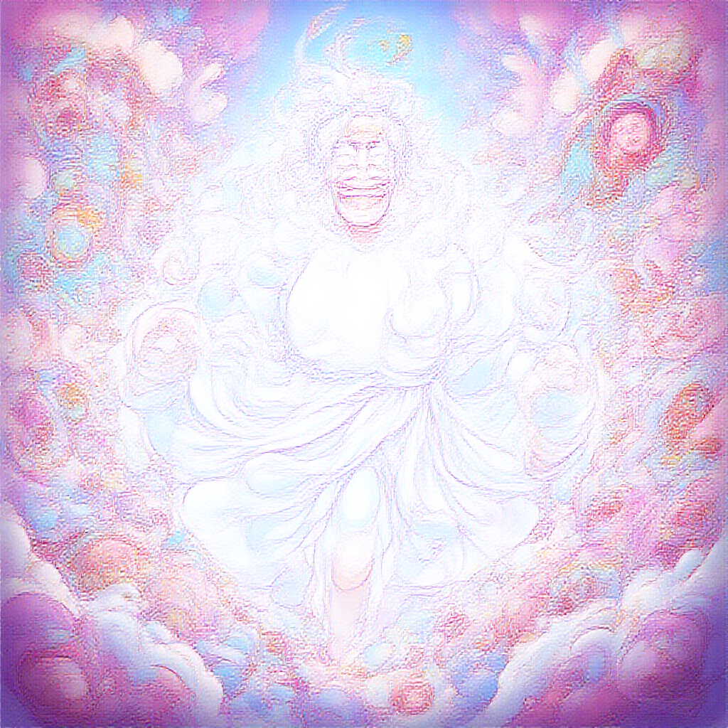 In a vibrant and whimsical realm bursting with color, Luffy from One Piece is depicted in his awe-inspiring Gear 5 transformation as the legendary God Nika. His pristine white form is intricately illustrated, highlighting his exaggerated rubbery features with astounding artistry. The environment mirrors a kaleidoscope of imagination, with swirling clouds and playful elements that echo Luffy's buoyant spirit. His limbs stretch with comical elasticity, bending in impossible angles that bring a side-splitting sense of humor to the scene. Elements of the landscape seem to dance with him, visually echoing the boundless energy of his transformation. The cutting-edge rendering captures every detail, from the shimmering aura surrounding Luffy to the playful expressions that animate the landscape itself, creating an aesthetically captivating masterpiece that balances humor with the legendary power of the God Nika.