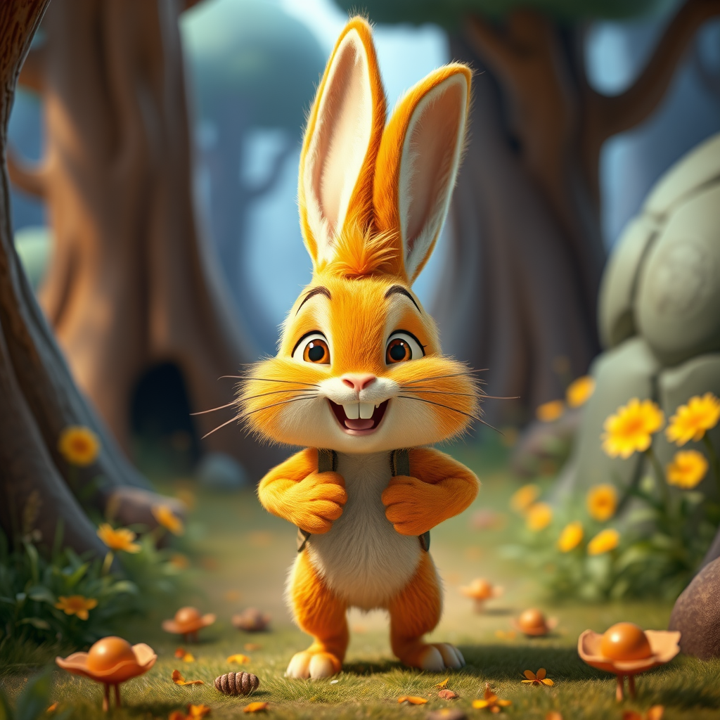 In a whimsical universe, an adventurous orange bunny becomes the unlikely hero in a Pixar-style animated film, where comical antics and eerie surprises blend seamlessly to entertain and thrill audiences.