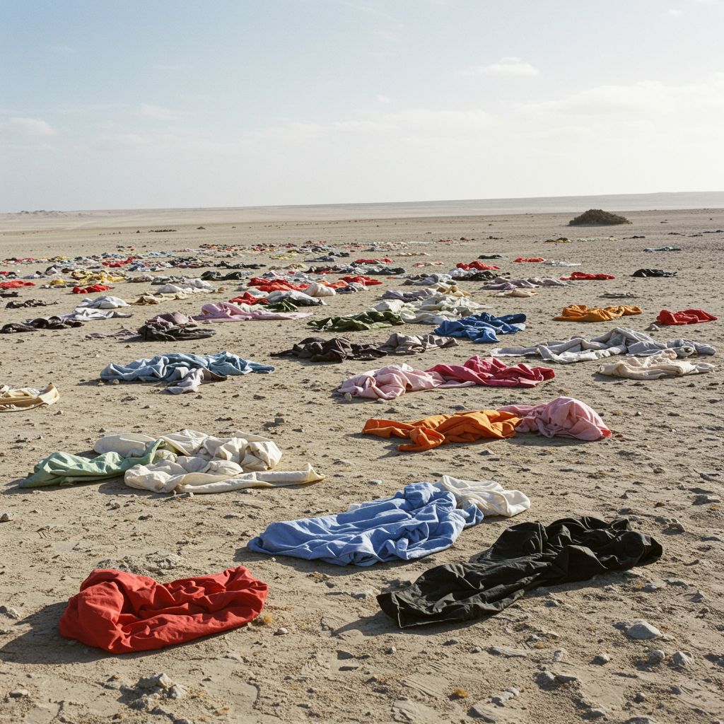 In a world devoid of inhabitants, the landscape is filled with vacant attire, lying flat and lifeless, creating a haunting tableau of absence.