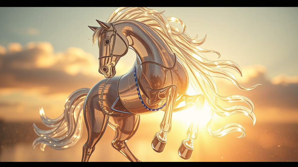 In a world of digital light simulations, where algorithms capture the intricate dance of photons, we explore the marvel of ambient occlusion. Once merely a fixed texture, it has transformed to dynamically engage with indirect light, creating a more lifelike representation of radiosity in virtual environments. Through the evolution of this technology, images reach HDR, 8K potential, capturing the elegance of a beautiful glass stallion. The scene transcends older limitations, avoiding undesirable elements and focusing on clarity, realistic anatomy, and harmonious composition that embrace the fluidity of light and form.