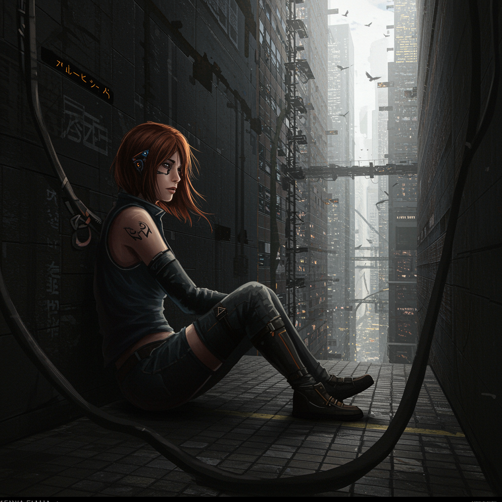 In a world of steel and shadows, she exists like a trapped bird, her wings clipped by invisible chains, longing for the sky yet confined within cold, constricting walls. The city looms like a relentless maze, its towering structures blocking out the sun, leaving her dreams confined to the edges of her perception. Hope flutters weakly within her chest, battling the oppressive weight of a future dictated by forces beyond her control, a solitary struggle against a backdrop of mechanical monotony. Her heart yearns for a freedom she can scarcely imagine, a distant horizon forever out of reach in this stark, dystopian landscape.