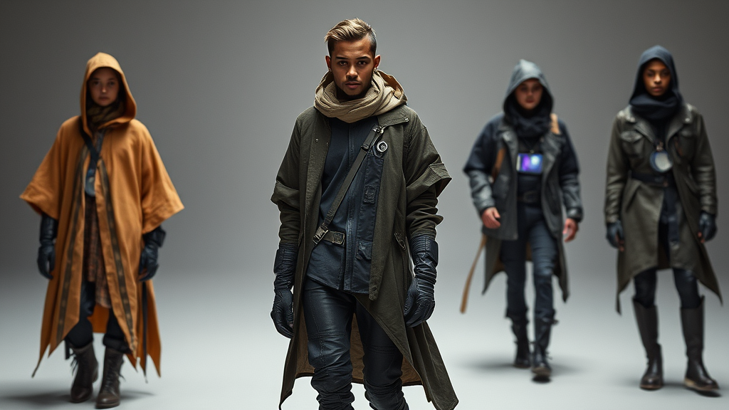 In a world where technology intertwines with mobility, the fashion line "TerraNomad" reimagines attire for the modern wanderer. This collection embraces the essence of nomadic freedom fused with futuristic flair, offering garments that are both functional and stylish. Each piece features innovative, sustainable materials like self-repairing fabric and climate-adaptive textiles, ensuring durability and comfort across diverse terrains. Bold silhouettes, such as asymmetrical cloaks and modular jackets, provide versatility and a sense of empowerment. Embedded wearable technology allows for seamless integration with digital devices, offering connectivity and convenience to suit a dynamic lifestyle. "TerraNomad" envisions a wardrobe that adapts to the technologically advanced nomad, blending timeless tradition with forward-thinking design.