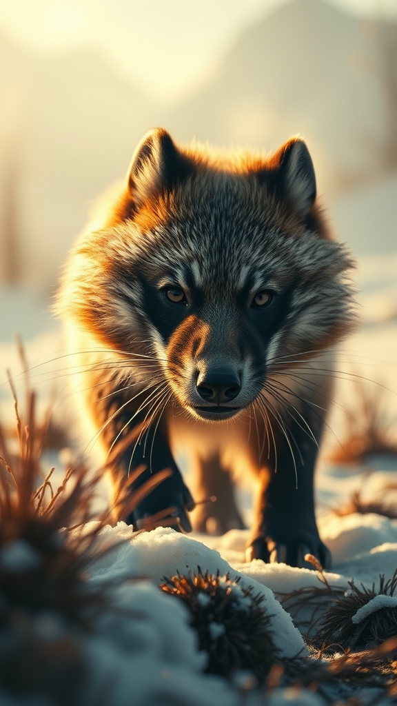 In the mystical land of 'Worshipers,' an enigmatic beast known as the wolverine emerges from shadows, its presence accentuated by the crisp clarity of a Wollensak 127mm f/4.7 Ektar lens. Amidst fantastical landscapes painted in tones of white and gold, the wolverine's distinctive nose twitches in close-up intensity, capturing the primal dance of survival. Brutal action unfolds as the creature maneuvers with precision and grace, each moment a testament to its untamed spirit and the enchanting yet fearsome beauty of its existence.