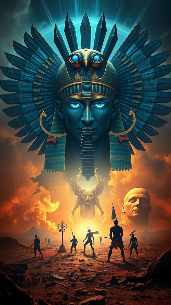 In the scorching deserts of Egypt, the radiant avatar of Horus, celestial god of kingship, begins to unravel the very fabric of humanity's existence, his piercing blue eyes blazing with an otherworldly fury as he sees the pitiful state of mortals, who toil in darkness, bound by the shackles of their own self-destruction, and Horus's divine ire ignites a catastrophic maelstrom, as he unleashes a terrifying pantheon of dark forces, including the vengeful goddess Sekhmet, the malevolent entity Apep, and the mythical creatures of the underworld, to wreak havoc upon the world, reducing cities to rubble, and civilizations to dust, in a unholy crusade of annihilation, while the remnants of humanity cower in terror, realizing too late that their recklessness has awakened the wrath of the gods, and Horus's malevolent intentions propel the world towards an abyss of unrelenting horror, sealing the fate of humanity, in a foreboding descent into darkness, where the triumph of chaos reigns supreme, and the last whispers of human defiance are extinguished beneath the crushing heel of the divine monolith, Horus's eternal, unyielding, and all-consuming fury.
