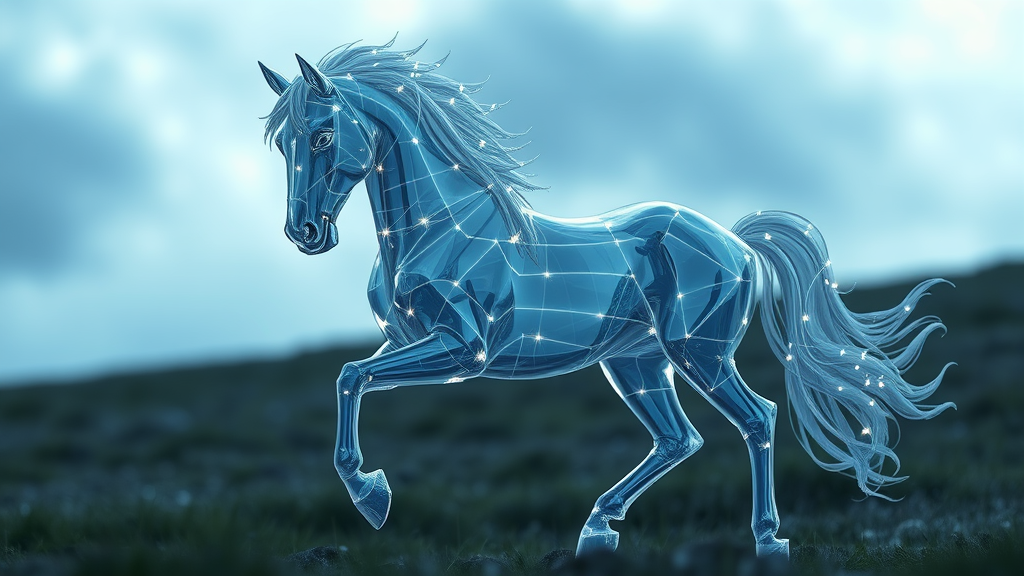 In the sophisticated domain of digital illumination simulation, where algorithms simulate the intricate play of light particles, we encounter the captivating phenomenon of ambient occlusion. Initially a mere static overlay, it has now advanced to dynamically adapt to indirect lighting, enhancing the photorealistic emulation of radiosity within digital landscapes. Imagine a splendid glass stallion brought to life in this virtual environment, where high dynamic range and ultra-high-definition detail immerse viewers in stunning clarity. The scene is devoid of imperfections, free from visual blemishes like watermarks, awkward compositions, and digital noise, ensuring a flawless portrayal of the stallion. The anatomy of this ethereal creature is impeccably designed, showcasing accurate and harmonious proportions within a seamless and lifelike digital setting.