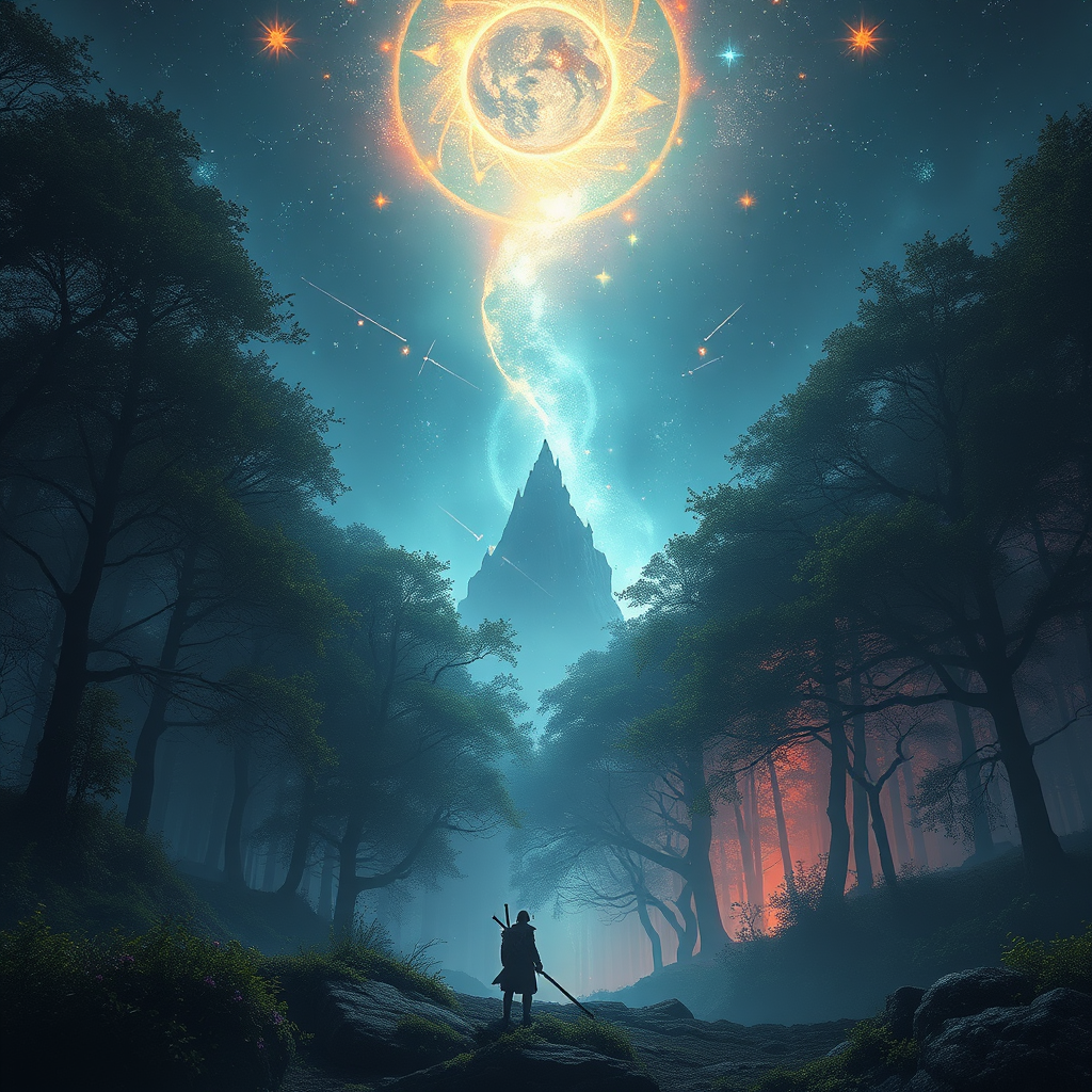 In the still of the night, under a celestial canopy, the distant drums of an impending war resonate, calling forth the brave. The ethereal voice whispers through the fabric of reality, urging you to awaken, to embrace the destiny that stirs your core. A mystical hunger drives you, a thirst for the heroic journey that lies ahead. Within this 5D realm, where dimensions weave in and out like a dream, the Unreal Engine 5 brings to life a world reminiscent of Ori and the Blind Forest. Here, the bioluminescent glow of the enchanted woods bathes the landscape in surreal colors, painting an evocative backdrop. The call to arms echoes as you stand poised at the threshold of fate, where courage and valor intertwine. The battle awaits, luring you with its siren song, as the fight comes to your doorstep, demanding you to rise and take up the cause.