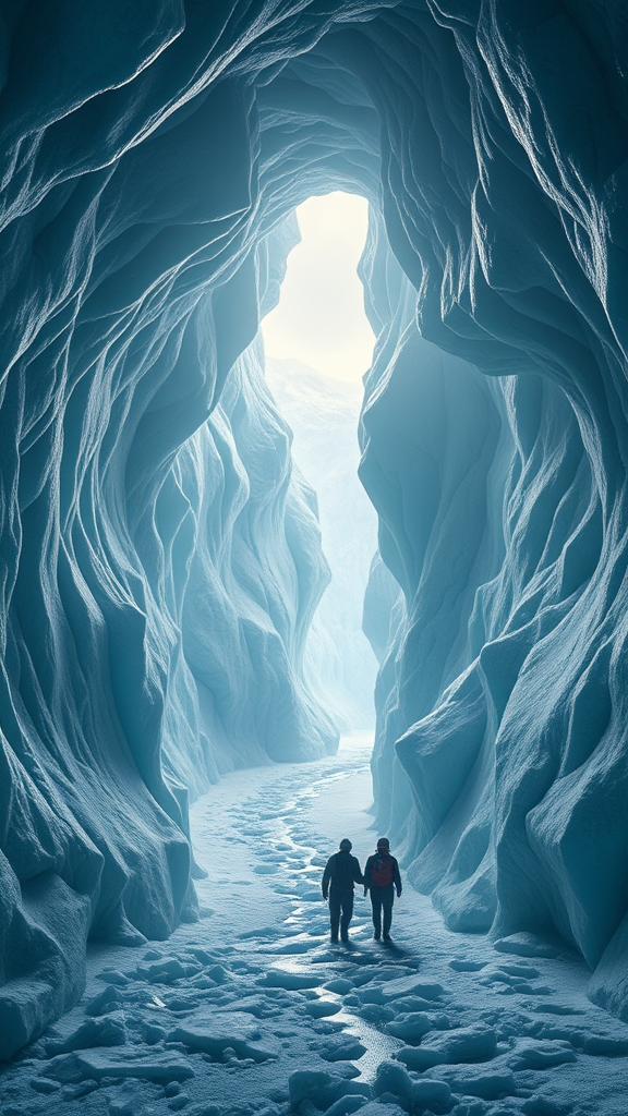 In the stillness of an overcast day, old wind chimes chimed softly, a luminous whisper emerging from my ears as distant glaciers surged towards me. A network of interconnected tunnels beneath Antarctica's sheer ice held a steady hum, with figures moving through the labyrinthine passages, both fascinating and formidable. Fantasy-inspired digital artwork captures the scene, rendered in octane, bringing to life the ethereal dance of light and ice.