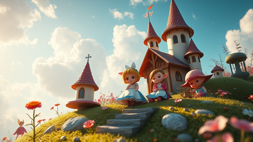 Inspired by the fantastical realms of Alice in Wonderland, this concept delves into a magical fairy tale world, captured through the lens of Unreal Engine and Octane Render. Envision a breathtaking, awe-inspiring 3D scene where vibrant colors blend seamlessly with whimsical landscapes. Cute and enchanting characters inhabit this universe, each rendered with exquisite detail and beauty. The ethereal atmosphere is further enhanced by the artistic touches of Adobe Photoshop, bringing to life a wonderland of creativity and imagination where every element radiates charm and magic.