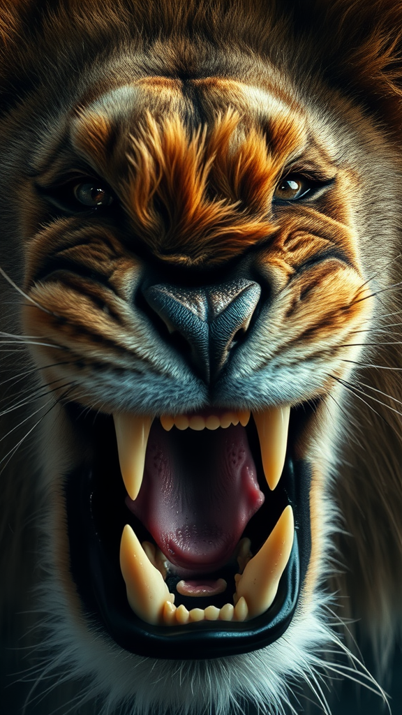 Intense hypermacro shot of an enraged lion's eye, exuding raw ferocity and emotion, strikingly expressive and realistic. The hyper-realistic detail showcases every nuance of texture, with cinematic lighting highlighting its depth. The ultra-detailed quality brings the scene to life in vivid 4D, capturing the essence of fierce power with unparalleled realism and photographic precision.