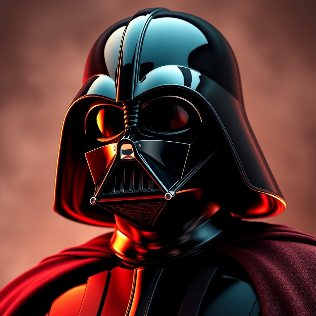 Intricate 3d render of an exquisitely detailed Darth Vader, set in a 150 mm frame under beautiful studio soft lighting, with subtle rim lighting to enhance the vibrant details. Inspired by the Star Wars universe, this hyper-realistic portrayal boasts anatomical precision and elegance. The scene is set against a stunning background rendered in octane, presented in 8k for unmatched quality. This masterpiece illustration blends extreme delicacy with immersive detail, perfect for CG unity projects or high-resolution wallpapers. The image is a harmonious blend of detailed CG artistry, layered with sepia tones and enhanced by a blend of traditional techniques like painting, sketches, and cartoons. A masterpiece of refined absurdity, the image retains a singular focus on Darth Vader's allure, ensuring impeccable anatomy and face structure while avoiding low-quality defects or distracting elements.