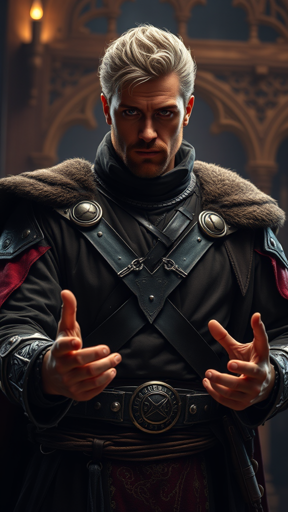 intricate details, cinematic lighting, one male figure, highly detailed, heroic stance, medieval ambiance, fantasy setting, role-playing game, Dungeons and Dragons style, ultra resolution, ultra quality, avoid duplicated eyes, ensure normal eye structure, correctly formed hands, correct finger count, natural hand formation, maintain high resolution, eliminate jpeg artifacts, focus on a distinctly masculine character