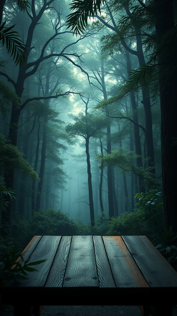 Intricate forest ambiance, atmospheric olive lighting, centered on a table, 4k UHD clarity, mysterious and dark vibes, hyper-detailed setting with vibrant forest backdrop, epic composition, using octane render with sharp focus, high-resolution isometric perspective, semi-realistic CGI style, blending sketch and cartoon elements with deliberate imperfections for artistic effect, keeping it vivid yet allowing certain blurred or irregular elements for a unique, stylized outcome.