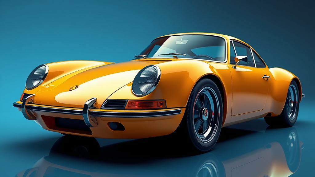 Intricately designed infographic featuring retrofuturistic swoopy Porsche cars, discovered in a bluemap setting with wide racing wheels inspired by Can-Am racing. This concept car boasts round and smooth contours, capturing a vintage essence while showcasing intricate details. The digital art poster gleams with award-winning quality, featuring max-detail digital painting and stunning studio lighting. Rendered in Blender, the 3D art masterpiece reflects a deliberate_v11 model, with creative elements enhancing the overall aesthetic.