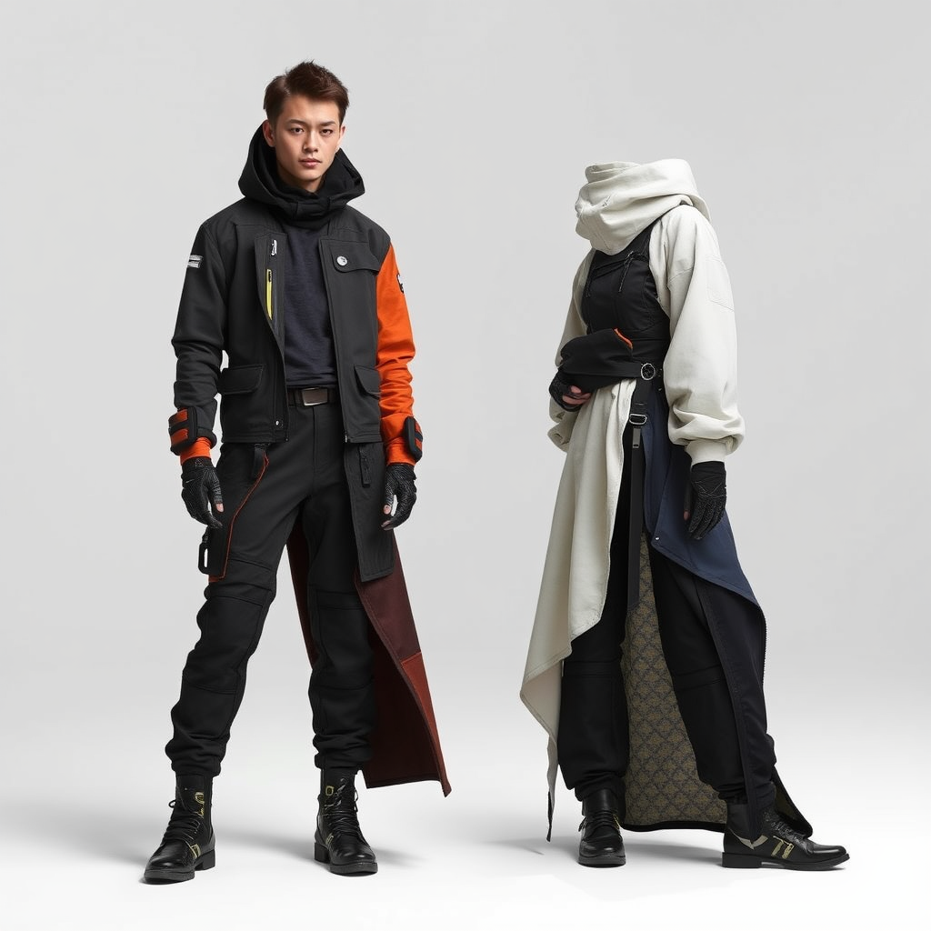 Introducing "Nomad Nexus," a visionary fashion line where the future meets the frontier. This collection reimagines the nomadic lifestyle, integrating sleek futuristic aesthetics with earthy, transient influences. Garments boast bold silhouettes, reflecting a harmony between cutting-edge design and wanderlust spirit. Innovative materials such as solar-infused fabrics and adaptive textiles ensure style never sacrifices functionality. Outfits are equipped with modular elements, allowing wearers to customize and adapt to shifting climates and environments—a perfect fit for the technologically advanced wanderer. Each piece combines lightweight durability with high-tech features like built-in navigation pockets and self-cleaning mechanisms, supporting an ever-evolving journey. Whether traversing urban jungles or digital deserts, "Nomad Nexus" offers a seamless blend of avant-garde fashion and practical adaptability for the modern explorer.
