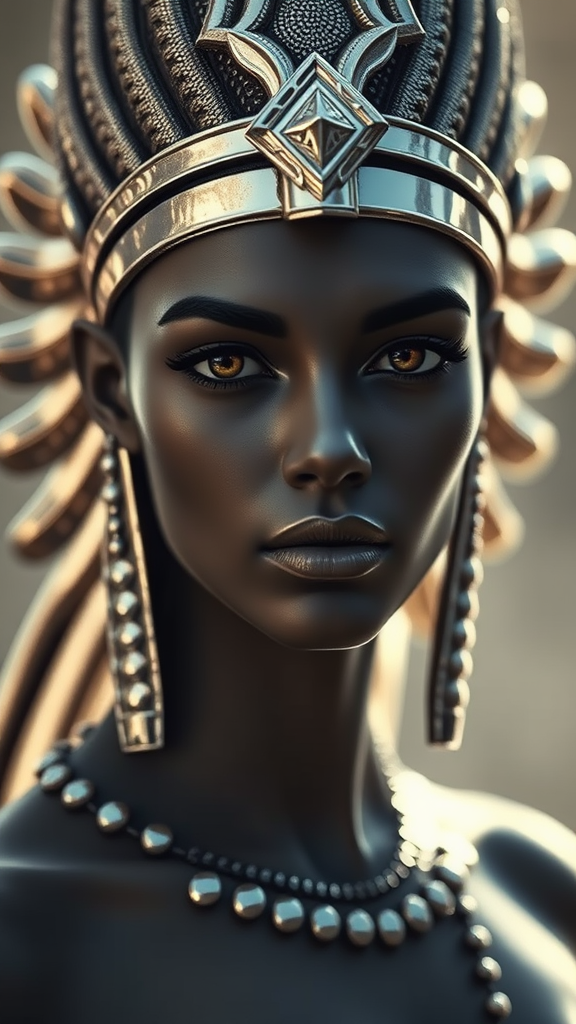 Isis goddess of Egypt ::5 Luxurious Portrait Photography::4 beautifully illuminated, crystal-clear, high-resolution, artistic, distinctive, prize-winning image, Canon EOS 5D Mark IV DSLR, f/8, ISO 100, 1/250 second, close-up, natural lighting, expert, elegant, headshot, glibatree technique::3 monochrome, textured, abstract, signature::-2.