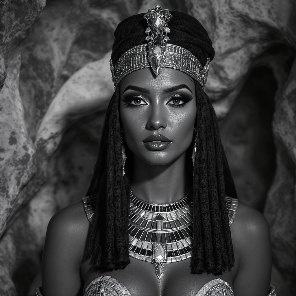 Isis goddess of Egypt ::5 Luxurious Portrait Photography::4 beautifully illuminated, razor-sharp focus, high-resolution, artistic, distinctive, prize-winning photograph, Nikon D850 DSLR, f/8, ISO 64, 1/250 second, intimate close-up, natural lighting, expert, elegant, headshot, glibatree-inspired style::3 monochrome, textured, abstract, signature::-2.