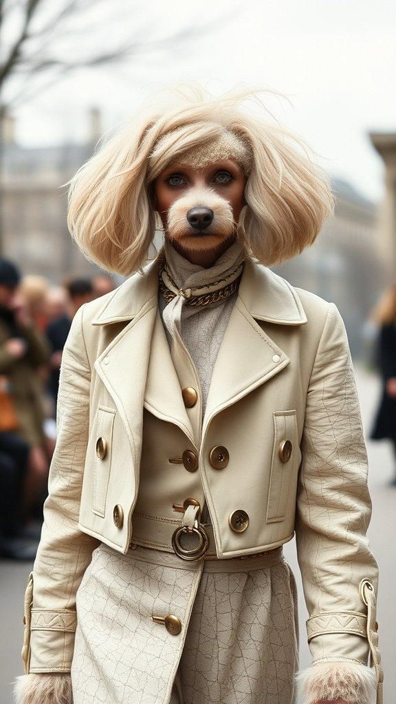 Ivory-toned Fall 2017 Paris Fashion Week, captured in an Irving Penn style, merging the elegance of 1860-1969 with the edgy flair of Poodlepunk, featuring textures of leather and hide, echoing Richard Doyle's whimsy with ready-made elements, evoking a raw and sophisticated aesthetic in a 2:3 aspect ratio, infused with subtle creative nuances.