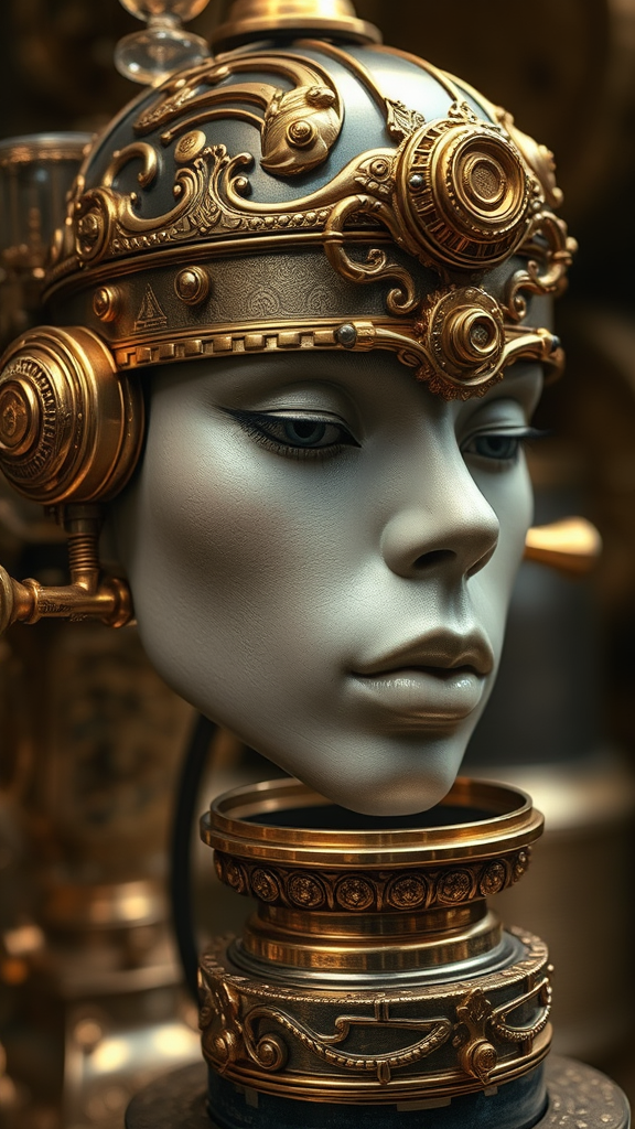 IvoryGoldAI steampunk coffee machine elaborate ornate 16k UHD HDR photorealistic hyperrealistic hyperdetailed analog style demure detailed skin pores matte skin soft lighting subsurface scattering realistic heavy shadow masterpiece best quality ultra realistic golden ratio intricate high detail film photography soft focus.