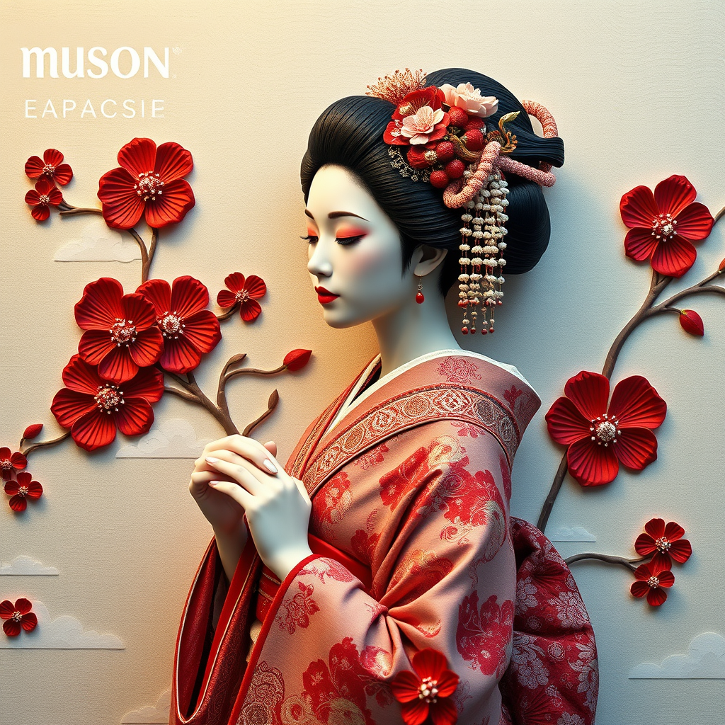 japanese geisha exquisite wallpaper, inspired by joel robison's style, soft white and deep crimson tones, samyang af 14mm f/2.8 rf lens effects, traditional figurative realism, 500–1000 ce aesthetic, intricately carved, hint of anime influence, aspect ratio 9:21, high quality, subtle creative nuances