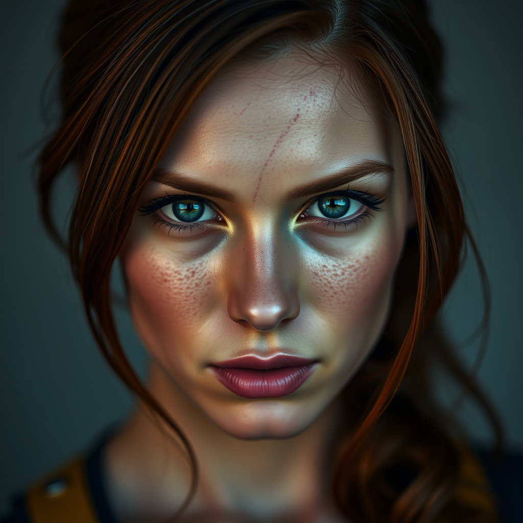 Jean Grey, a young 20-year-old female from the X-Men universe, captures attention with her alluring presence and focused gaze directed at the viewer. In this portrait photography-style depiction, her skin is intricately detailed, lending a sense of realism and photo-realism captured in an 8k resolution. This high-definition RAW color art showcases her in a full-length frame, highlighting her beauty with a piercing gaze. The diffused soft lighting creates a cinematic atmosphere, with a shallow depth of field and sharp focus enhancing the hyperrealism. Despite the low-resolution quality often associated with JPEG artifacts and text errors, this image avoids qualities like exaggeration—such as extra fingers or limbs—and maintains proper anatomy and proportions, presenting Jean with elegance and authenticity. The image stays free from watermarks, signatures, and any display of morbid or malformed forms, embodying a flawless representation of her character.