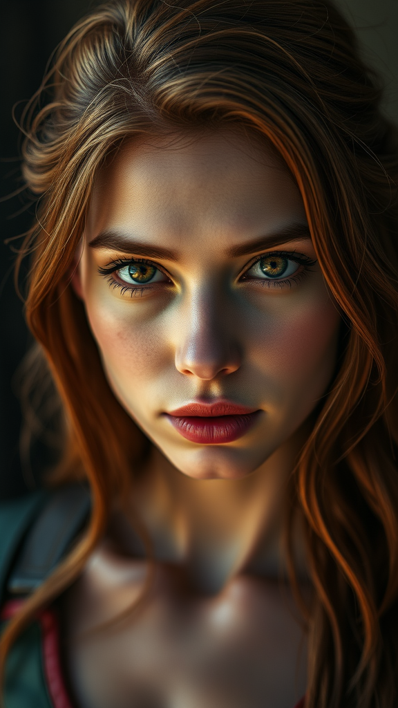 Jean Grey, a youthful 20-year-old female from the X-Men universe, is depicted in a captivating portrait photography style. Her enchanting gaze meets the viewer's eyes, exuding a sense of allure and confidence. The artwork is characterized by its realistic and photo-realistic quality, rendered in 8k resolution with intricate details. The portrayal captures a full-length frame showcasing her detailed skin texture. The image is enhanced with high detail RAW color art, set against diffused soft lighting that creates a shallow depth of field and sharp focus. The hyperrealism is emphasized through cinematic lighting, giving the scene a dramatic flair. The result is a striking depiction with a flawless appearance, maintaining elegant proportions and anatomy, and free from any distortions or imperfections like pixelation, blurriness, or anatomical errors.