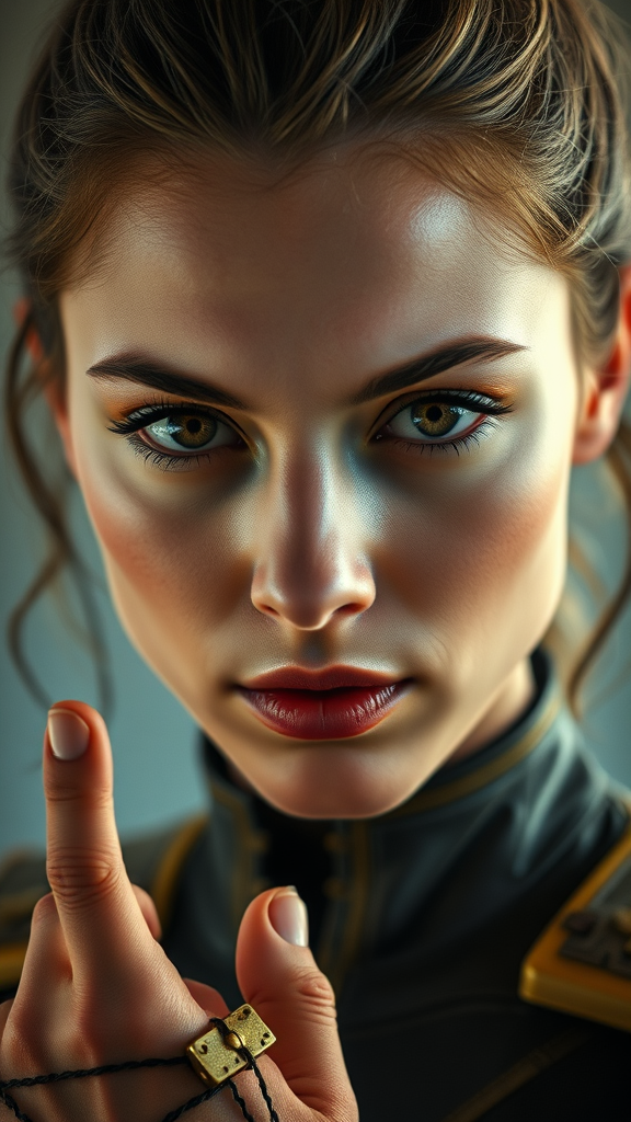 Jean Grey-inspired character, young woman, part of a superhero team, engaging gaze, photographic portrait, intricate skin texture, lifelike, ultrahigh definition, intricately detailed, full-frame perspective, vivid RAW color capture, striking presence, gentle and diffused lighting, limited depth of field, clear and crisp focus, hyperrealistic approach, cinematic ambiance, intentionally low-resolution elements, textual nuances, artefacts, aesthetic imperfections, placeholder qualities, unusual repetition, surreal, exaggerated, frame anomalies, anatomical quirks, distinctive traits, exaggerated appendages, surreal touches, ambiguous digits, creative reinterpretation, imaginative visualization, whimsical proportions, dreamlike attributes, speculative anatomy, interpretive forms, experimental style, unique identifiers, artistic marks.