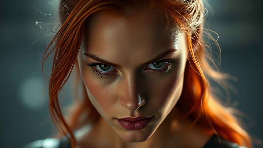 Jean Grey, young female, 20 years old, X-Men, alluring, engaging gaze, portrait, hyper-realistic photography, intricate skin detail, lifelike, 8k resolution, high detail with raw colors, striking full-length composition, piercing presence, soft diffused lighting, shallow depth of field, sharp focus, cinematic lighting, avoiding distortion, maintaining quality, focusing on realistic anatomy, avoiding errors in anatomy and proportions, clear and defined features, ensuring no extraneous elements or distortions.