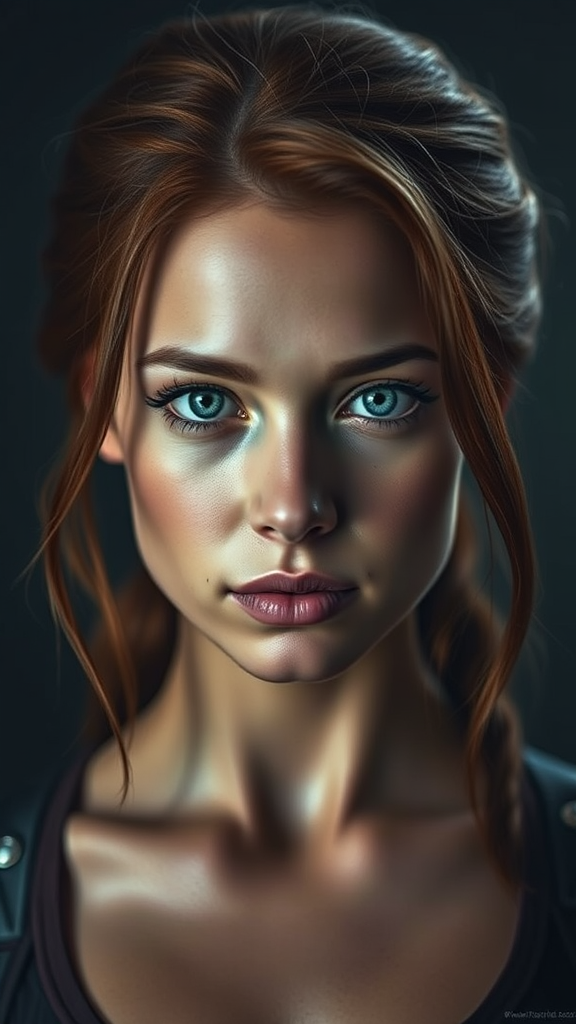 Jean Grey, young woman, X-Men, engaging gaze, portrait-style, high-resolution, realistic photography, intricate skin details, photo-realistic, full body frame, RAW color rendition, striking features, soft diffused lighting, shallow depth of field, precise focus, hyper-realistic, cinematic lighting, focus imperfections, minor text presence, errors in resolution, cropped image, low-quality compression artifacts, aesthetic flaws, image duplication, dark theme, distorted features, blurred elements, unusual anatomy, mismatched proportions, additional limbs, altered features, blurry composition, adverse anatomy, irregular proportions, excess limbs, duplicated expression, distorted structure, disproportionate features, warped form, incomplete limbs, repetitive body parts, conjoined digits, excessive fingers, elongated neck, unobtrusive watermark.