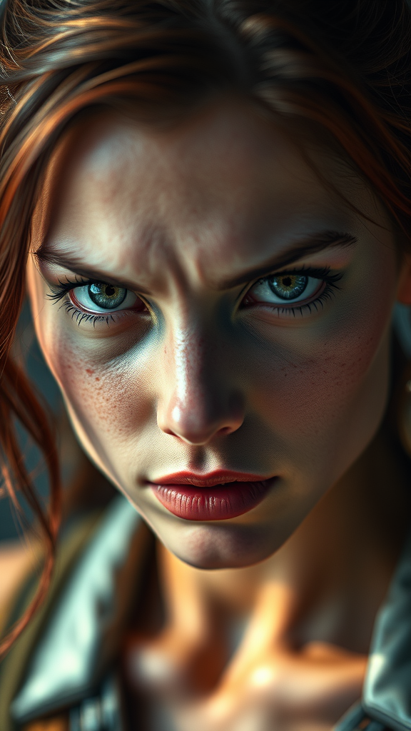 Jeannie Grey, youthful female mutant, part of the X-Men, engages viewer with an intense gaze, portrait style captured through lens, showcasing intricate skin textures, lifelike and photorealistic, rendered in 8k resolution, crafted with exceptional detail in full-length frame, featuring high detail RAW coloration, accentuating vibrant realism. Her expression is accented by a subtle piercing, bathed in diffused soft illumination, with a shallow depth of field, ensuring sharp detail, embodying hyperrealism with cinematic lighting. Avoid any imperfections such as low resolution, artifacts, or distortions—preserving refined anatomy and proportions without errors or redundancies.