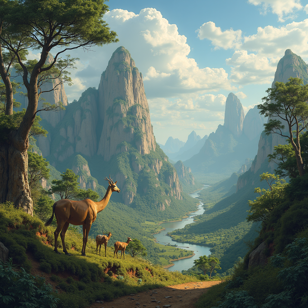 Journey back to the primordial expanse of Terranova, an ancient supercontinent where diverse species roamed freely across vast, interconnected landscapes, and evolution danced a unique rhythm as flora and fauna intermingled across the unified landmass.