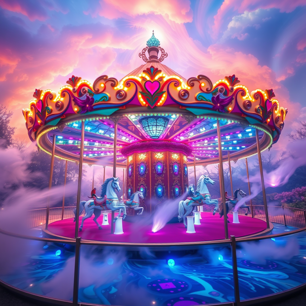 Journey through an enchanted carousel that whirls you into a realm of vivid dreams and fantastical landscapes.