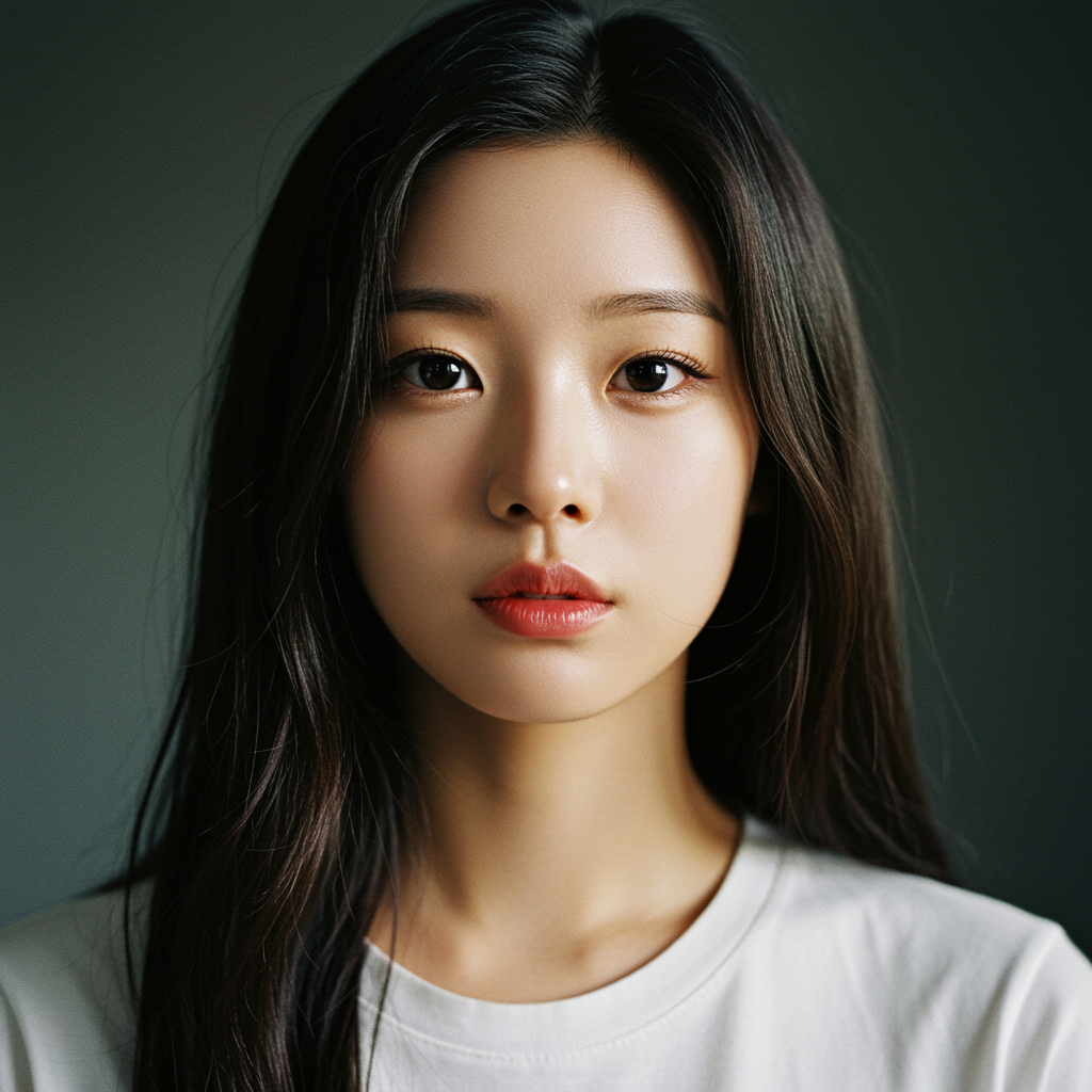 K-pop idol, stunning Korean girl, wearing a white t-shirt, featuring beautifully detailed eyes, high-detail RAW color photo, a professional shot, ultra-high-resolution, highly detailed CG 8K wallpapers, physics-based rendering, cinematic lighting, realistic and photorealistic digital art trending on Artstation, 8K HD highly detailed, with exquisite skin texture, hyper-detailed, realistic skin, best quality, captured with Nikon D850, film-like quality from Kodak Portra 400 using an f/1.6 lens, rich colors, hyper-realistic lifelike texture, dramatic lighting using Unreal Engine, trending on Artstation, utilizing Cinestill 800 for unique tonal quality, ensuring vibrant and detailed visuals.
