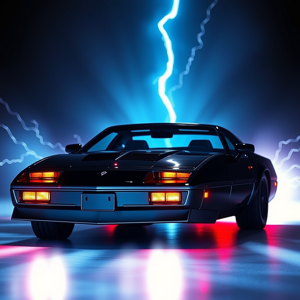 Kitt from Knight Rider::5 faster than light, warp drive, radiant, electric, intense spectrum flow::2 detailed intricacy, cinematic illumination::1.