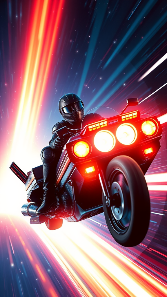 Knight Rider, velocity of stars, warp drive::5 dazzling, neon, intense spectrum surge::4 radiant, complex intricacy, cinematic illumination::1