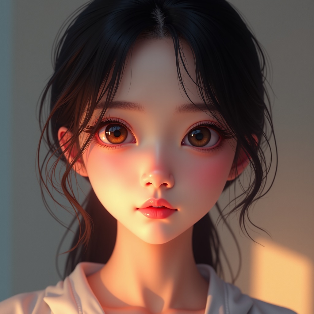 View this AI-generated image featuring a stunning korean girl with captivating detailed symmetrical eyes set against an immersive background with a gentle volumetric haze the scene is illuminated by natural soft lighting with global illumination creating a realistic atmosphere with an artistic touch