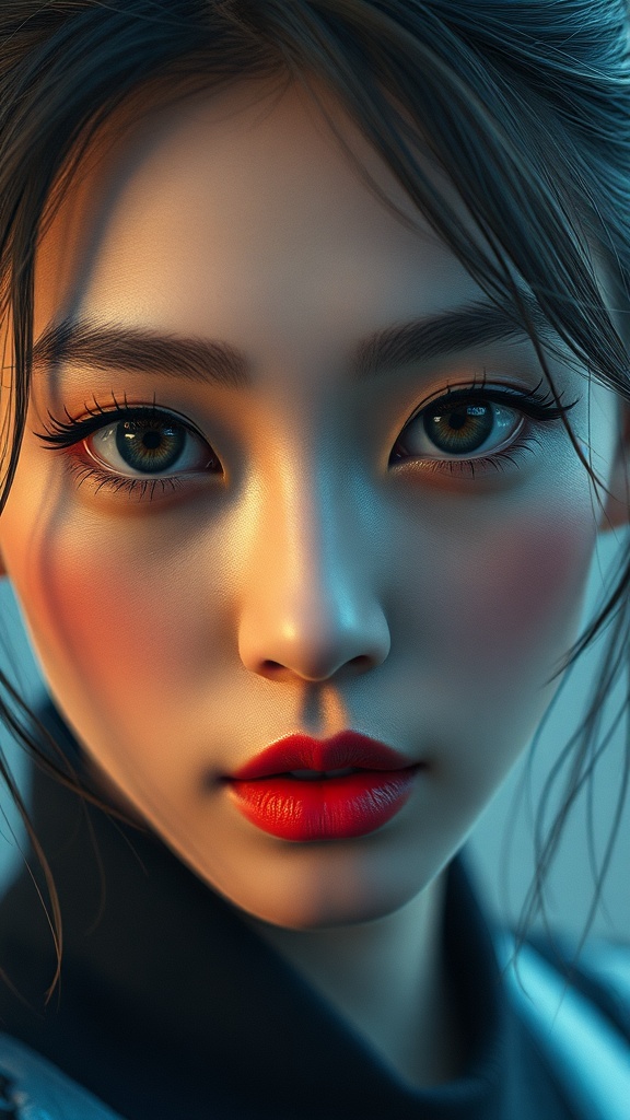 A stunning Korean pop idol with captivating and intricate eyes, captured in a high-detail RAW color photo. The image portrays a professional, ultra-high-resolution CG artwork suitable for 8K wallpapers, using physics-based rendering and cinematic lighting to achieve a photorealistic masterpiece. The composition utilizes the finest details in skin texture, ensuring lifelike realism, as envisioned by Lee Jeffries. Shot with a Nikon D850, employing Kodak Portra 400 film stock, and a f1.6 lens to enhance rich colors and dramatic lighting. Featuring hyper-realistic textures rendered in Unreal Engine, the piece is designed to trend on platforms like Artstation for its detailed, vibrant quality. The focus remains on flawless anatomy and proportions, ensuring a seamless and artistic visual experience.