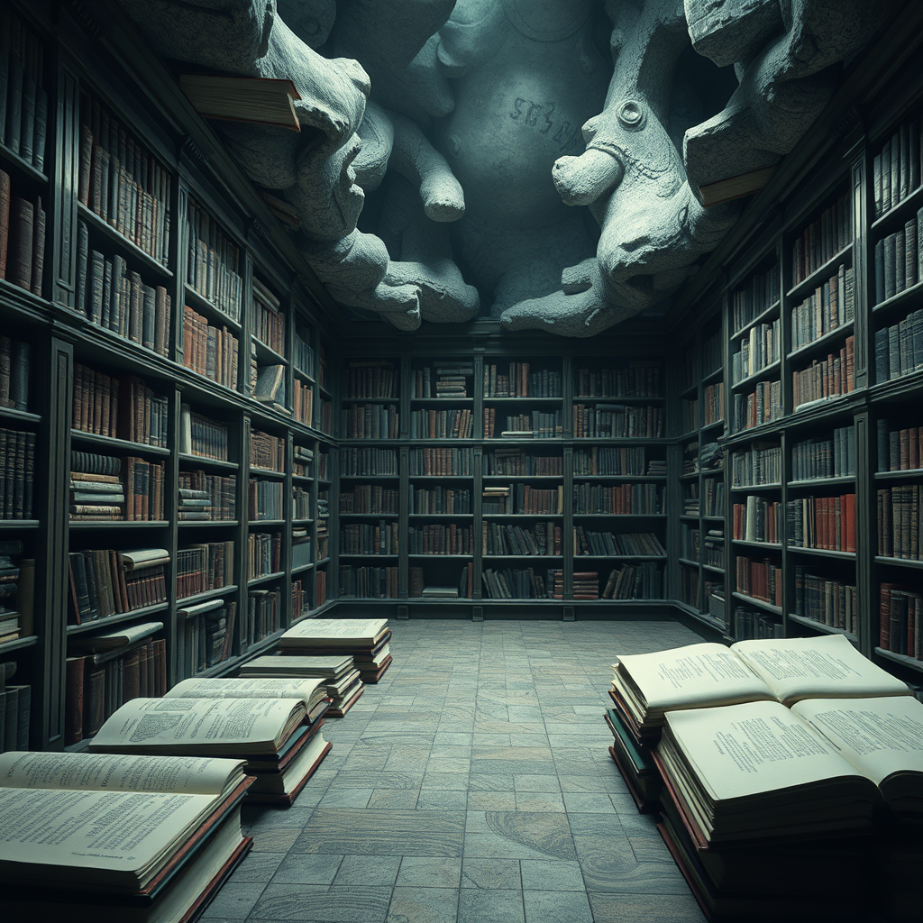 "L. Embark on a surreal journey through a mysterious library where every book tells a fragment of a hidden story, and the walls themselves whisper secrets of forgotten worlds."