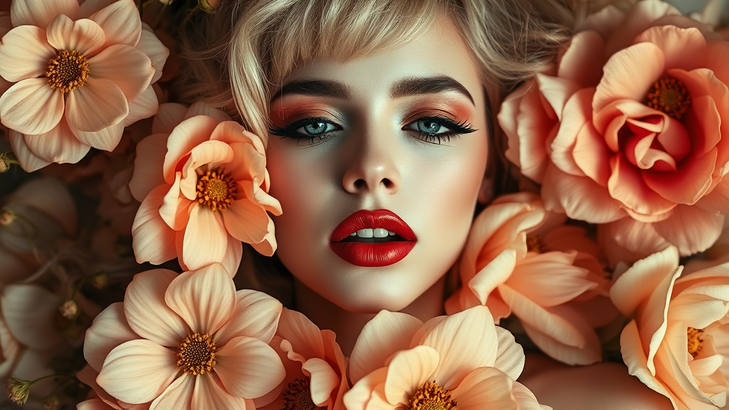 Lady Gaga album cover photograph featuring flowers, in the style of Helene Knoop, infused with light bronze and gold tones, inspired by Peter Coulson's ethereal romanticism, with a pop art influence. The image captures a dreamy ambiance akin to Provia film, reminiscent of Emmy Bridgwater's surreal touches, delivering a harmonious blend of modern elegance and timeless allure with a touch of mystique.