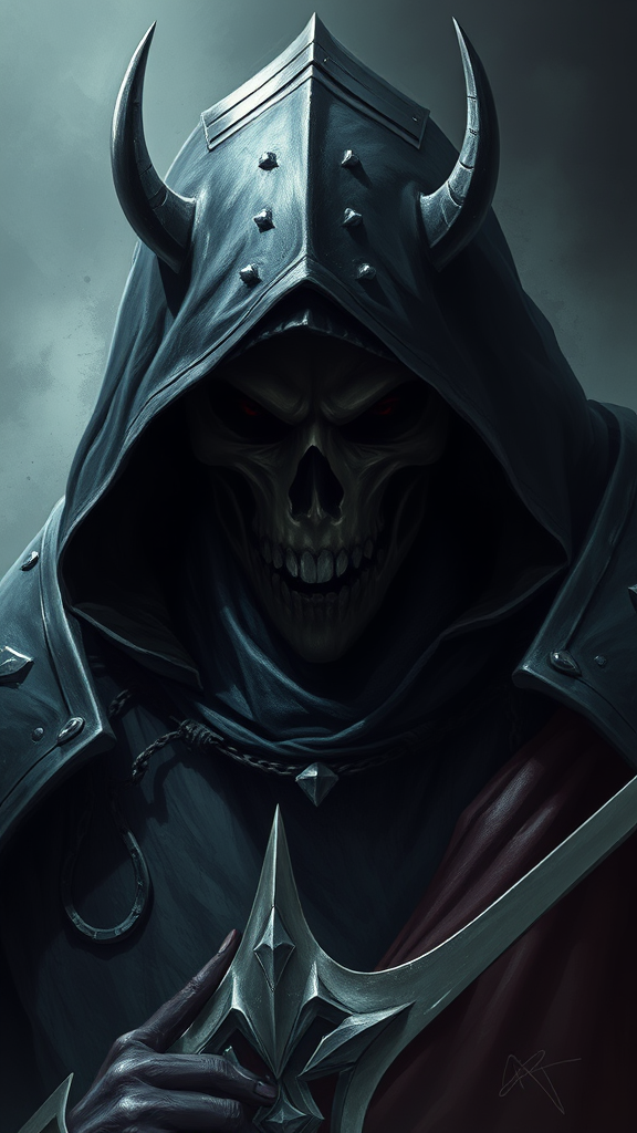 Legendary phantom knight portrait, imposing and relentless, exuding power and invincibility, harsh and epic composition, digital painting, dramatic with a gloomy atmosphere, emotionally deep, volumetric lighting casting mysterious shadows, intense and somber dark hues, leaving a lasting and haunting effect on the mind, high quality, high resolution, plastic sheen, duplicate elements, flawed anatomy, misplaced limbs, text presence, signature mark, visible watermark, low quality details, jpeg distortions.
