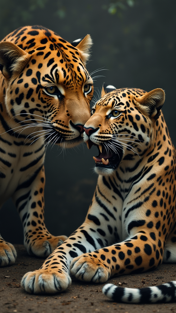 View this AI-generated image featuring leopards devoured my future irony party. Created using advanced AI technology, this image showcases science fiction. Perfect for creative projects, digital art, inspiration.