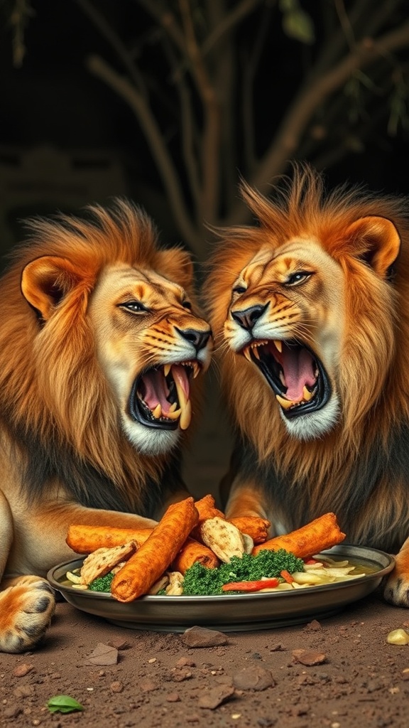 View this AI-generated image featuring lions devoured my dinner governance coalition. Created using advanced AI technology, this image showcases creative visuals, AI artwork. Perfect for creative projects, digital art, inspiration.
