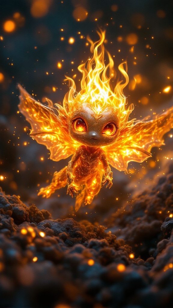 Little flaming cosmic babies. They all have fiery auras, the flames are cosmic and can burn in space. The gold ones have reflective metallic gold skin and glowing amber eyes, the silver ones have metallic chrome skin and glowing white or glowing blue eyes. They all have a tiny flame emitting from their foreheads, signifying their power. They hang out together in groups, flying through the cosmos feeding on the energy from gas clouds. They are a peaceful and inquisitive race of beings, exploring the universe in all of its splendour.