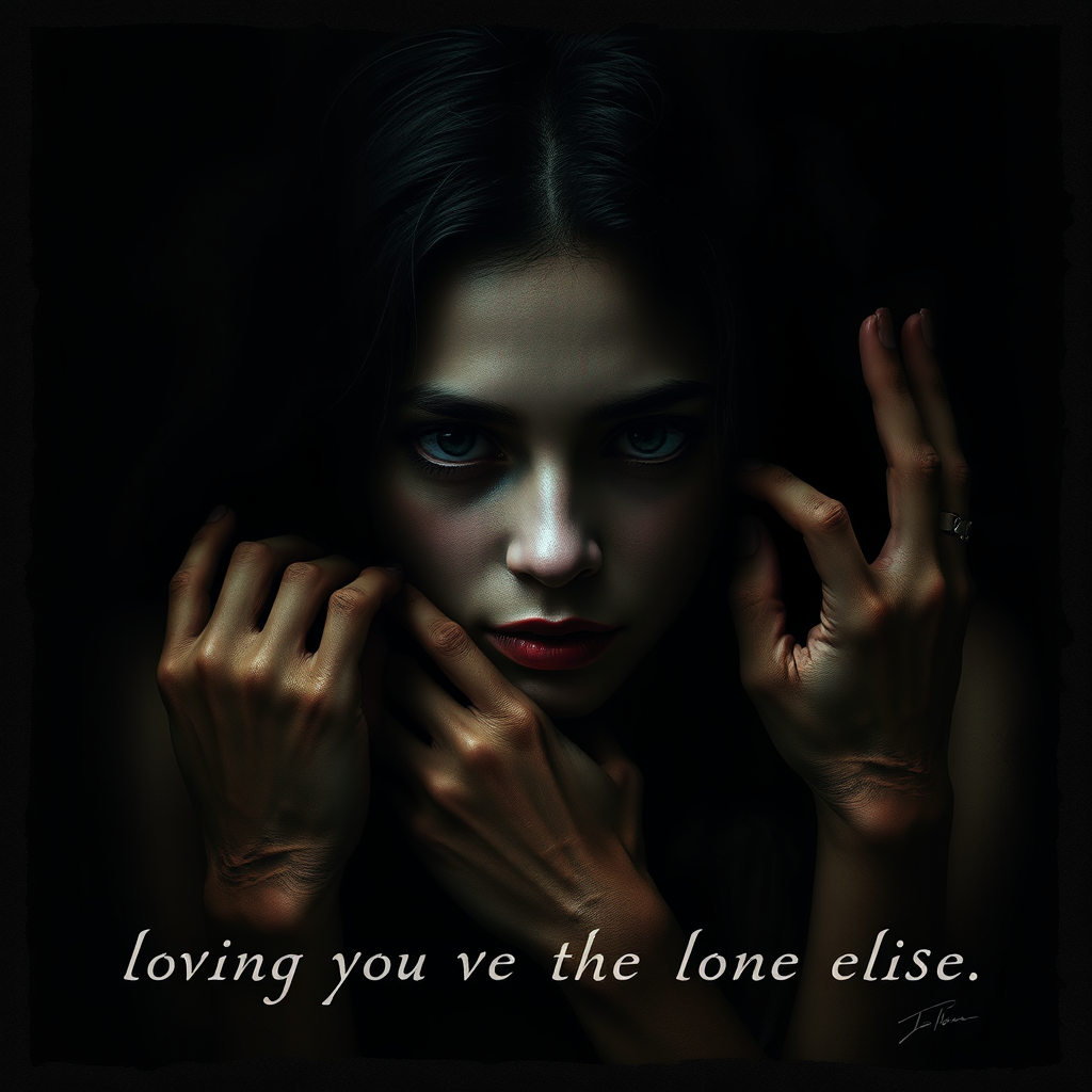 Longing to love you and nothing else, deeply moving composition, nostalgic imagery, digital artwork, dramatic, somber, emotionally deep, dramatic lighting, intense and brooding dark hues, leaving a lasting and haunting imprint on the mind, unforgettable, masterpiece, high quality, text, low quality, jpeg artifacts, unattractive, duplicate, grim, distorted, poorly rendered hands, poorly rendered face, distorted form, blurry, desiccated, flawed anatomy, disproportionate, extra limbs, cloned face, misshaped, disproportionate forms, absent arms, absent legs, extra arms, extra legs, elongated neck, camera, name, signature, watermark, logo, autograph, brand, truncated, censored, flawed anatomy, flawed body, flawed face, flawed teeth, deformities.